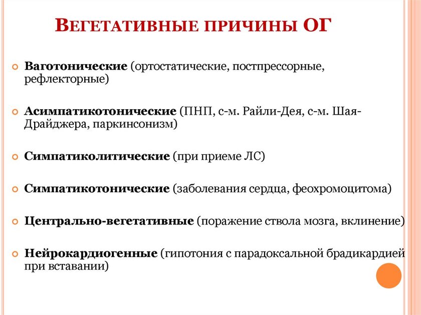 Приступы могут возникать на фоне применения гипотензивных средств, других препаратов сильного действия. У большинства подверженных этому состоянию наблюдается метеочувствительность, астенический синдром и комплекс симптомов, ранее известный как «вегетососудистая дистония». Возможна реакция сосудистой системы и на физическое или нервное истощение.